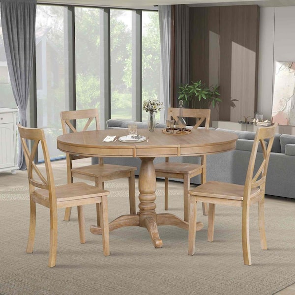 5-Piece Round Natural Wood Wash Wood Top Dining Room Set Seats 4