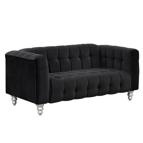 63 in. Square Arm Polyester Rectangle Sofa with Solid Wood Legs in Black