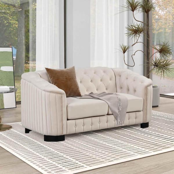 64 in. Square Arm Velvet Rectangle Sofa with Thick Removable Seat Cushion in Beige