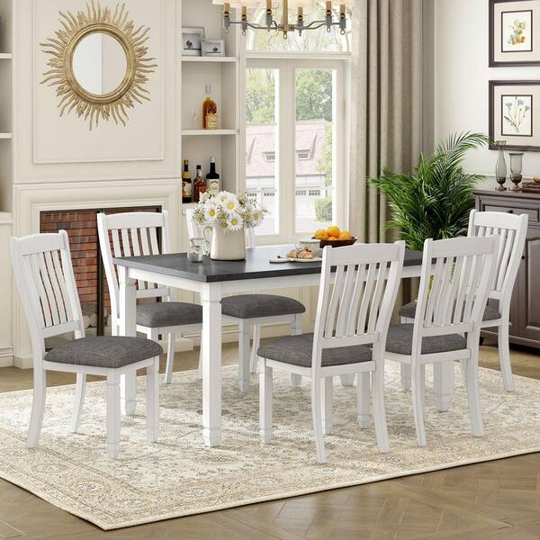 7-Piece White/Gray Wood Top Dining Room Set Seats 6