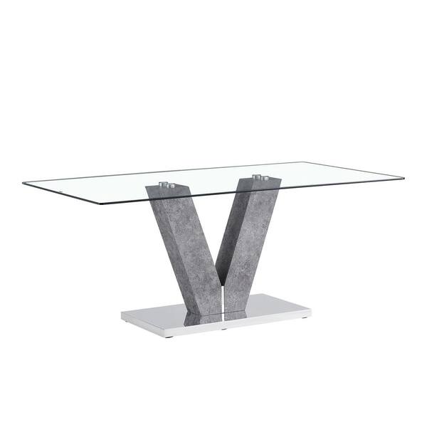 70.86 in. Gray Modern Tempered Glass Rectangular V Shaped Pedestal Dining Table Seats 6 to 8