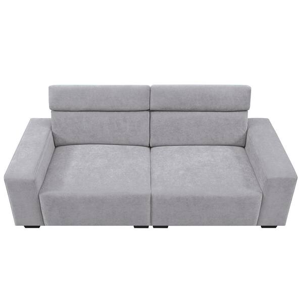 87.00 in. Polyester Rectangle Sectional Sofa in. Gray with Multi-Angle Adjustable Headrest