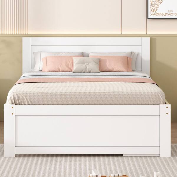 Antique White Wood Frame Full Size Platform Bed with Drawer and 2-Shelves