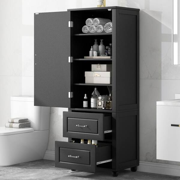 Black 61.40 in. Accent Cabinet with 2 Drawers and Adjustable Shelves