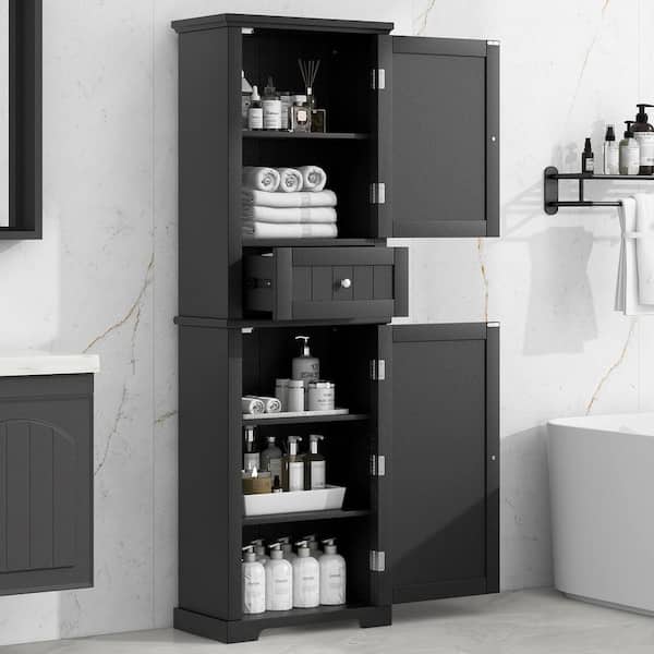 Black 67.30 in. Accent Storage Cabinet with Drawer and Adjustable Shelves