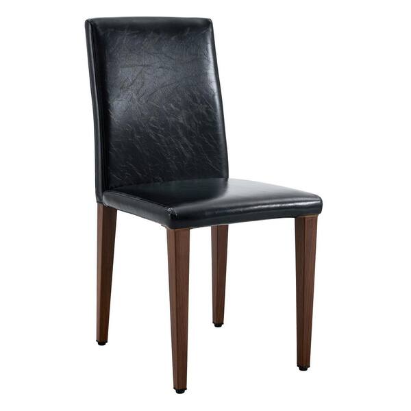 Black / Dark Walnut PU Leather Metal Frame Dining Chairs Set of 4