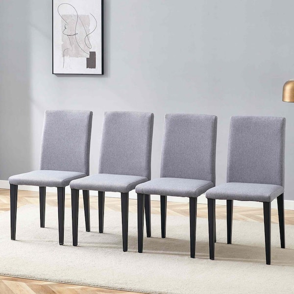 Black,Light Gray Linen Metal Frame Dining Chairs Set of 4