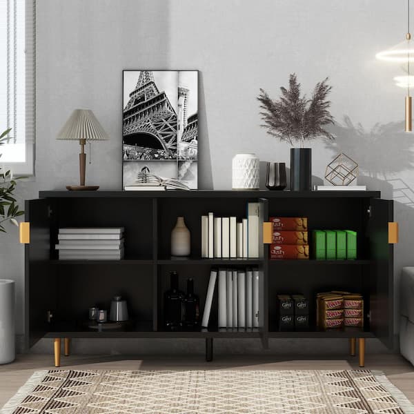 Black TV Stand Fits TV's up to 75 in. with Adjustable Shelves and Storage Sideboard Cabinet