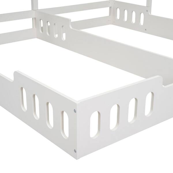 Creamy White Wood Frame Twin Size Platform Bed with Shelves and Guardrail