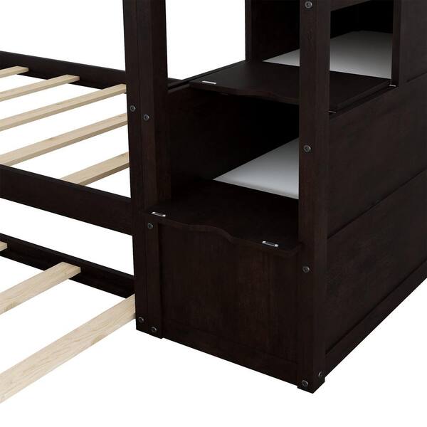 Espresso Twin-over-Twin Bunk Bed with Twin Size Trundle and 3 Storage Stairs