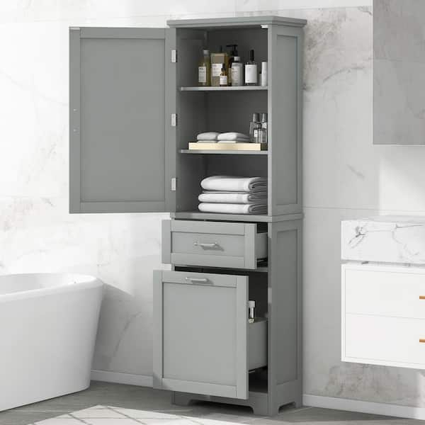 Gray 68.10 in. Accent Storage Cabinet with 2-Drawers and Adjustable Shelves