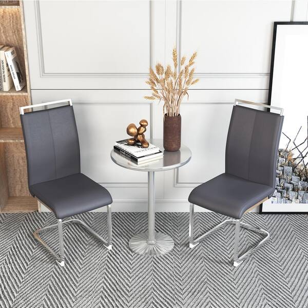 Gray PU Faux Leather High Back Upholstered Side Chair with C-Shaped Tube Sliver Coating Legs (Set of 2)