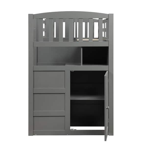 Gray Twin Over Full/Twin Bunk Bed, Convertible Bottom Bed, Storage Shelves and Drawers