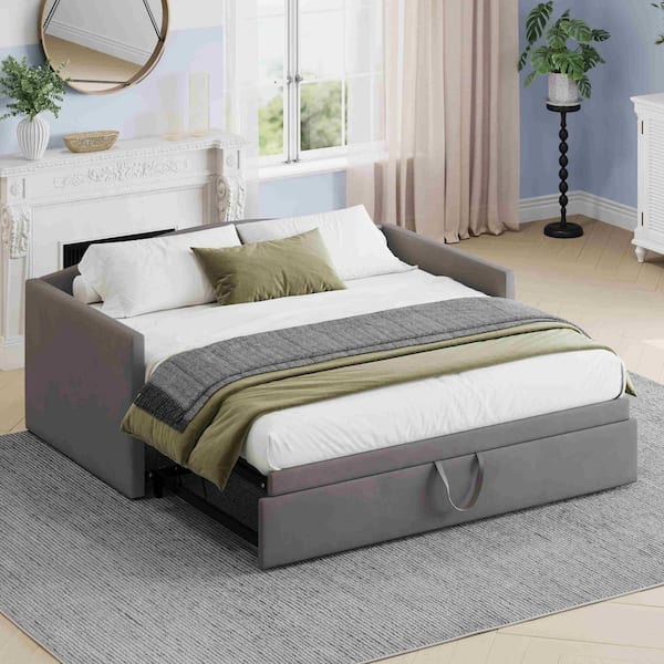 Gray Twin Size Daybed with Extended Pop Up Trundle