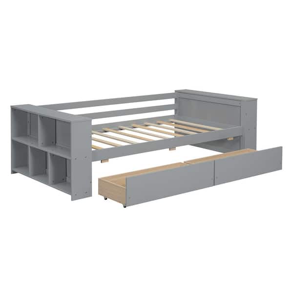 Gray Twin Size Daybed with Shelves and Drawers