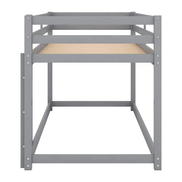 Gray Twin over Twin Floor Bunk Bed with Ladder
