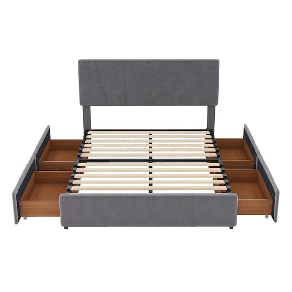 Gray Wood Frame Full Size Upholstery Platform Bed with 4-Drawers on Two Sides, Adjustable Headboard