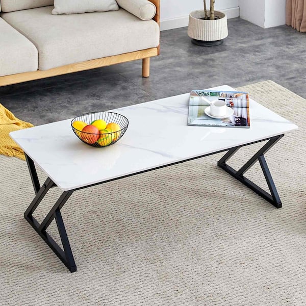 Modern 47 in. White/Black Rectangle Stone Coffee Table
