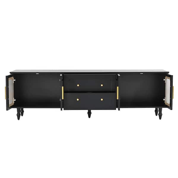 Modern Black TV Stand Fits TV's Up to 78 in. with Fluted Glass Doors, 2 Drawers and Cabinets