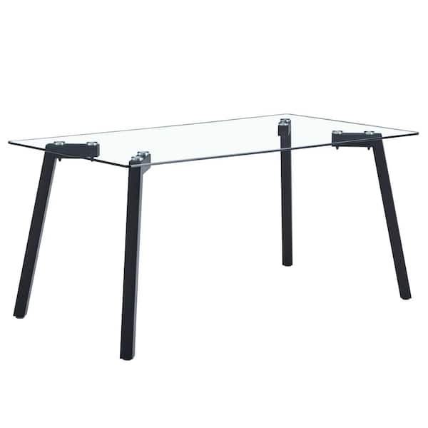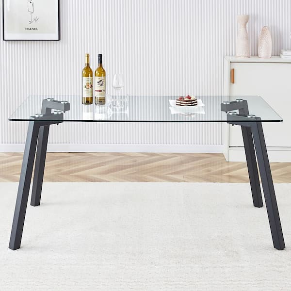Modern Rectangle Clear Glass 4 Legs Dining Table Seats for 6 (63.00 in. L x 30.00 in. H)