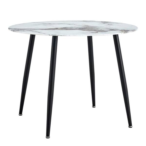 Modern Round White Faux Marble 4-Legs Dining Table Seats for 6 (40.00 in. L x 30.00 in. H)