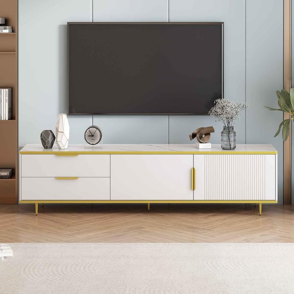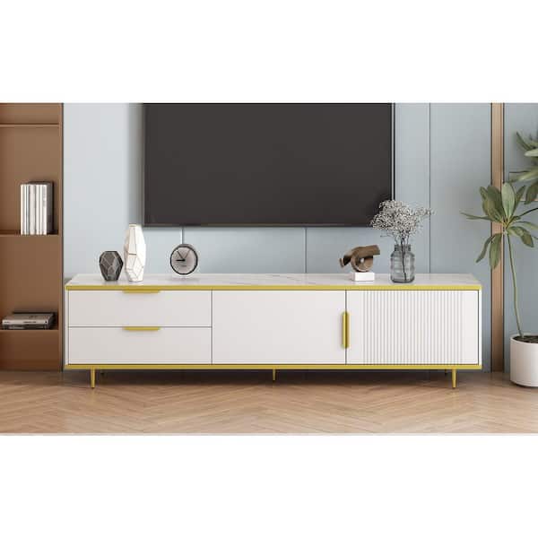 Modern White TV Stand Fits TV's Up to 65 in. with 2 Drawers and 2 Cabinets