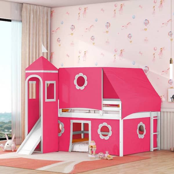 Pink Full Size Bunk Bed with Slide Pink Tent and Tower