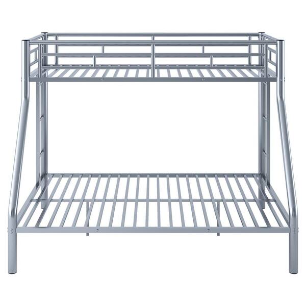 Silver Twin XL Over Queen Metal Bunk Bed with Ladder and Guardrails