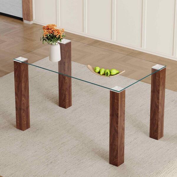 Transparent, Walnut Glass 49.6 in. 4-Legs Dining Table Seats 4