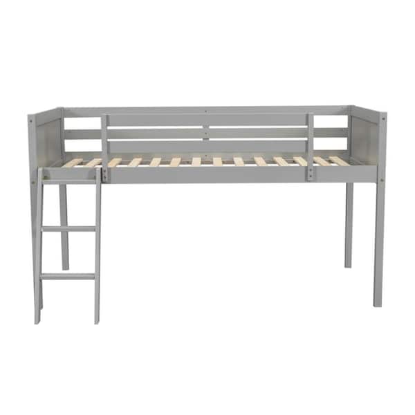 Twin Size Wood Low Loft Bed with Ladder, Ladder can be Placed on the Left or Right, Gray