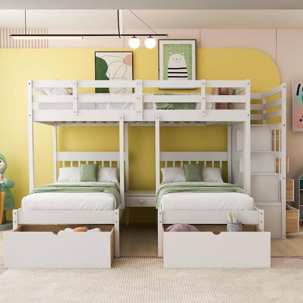 Twin over Twin Bunk Bed with Slide, House Bed with Slide, Gray