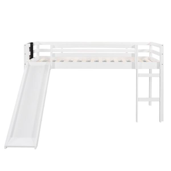 Twin size Loft Bed Wood Bed with Slide, Stair and Chalkboard, White