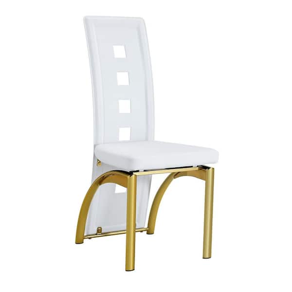 White/Gold PU Leather Metal Frame Dining Chairs Set of 4