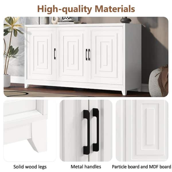 White TV Stand Fits TV's Up to 65 in. with 2-Spacious Storage Space, Solid Wood Legs