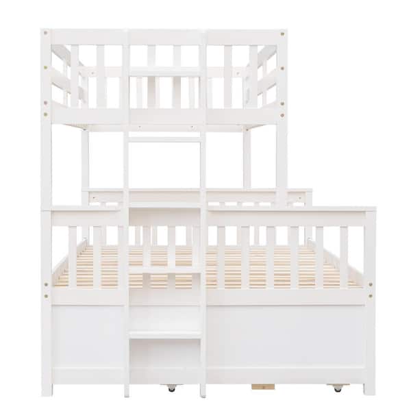 White Twin-over-Full Bunk Bed with Twin size Trundle, Separable Bunk Bed with Drawers for Bedroom