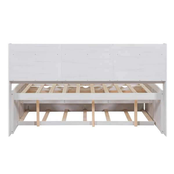 White Wood Frame Full Size Platform Bed with Built-in Bookshelves,3 Storage Drawers and Trundle