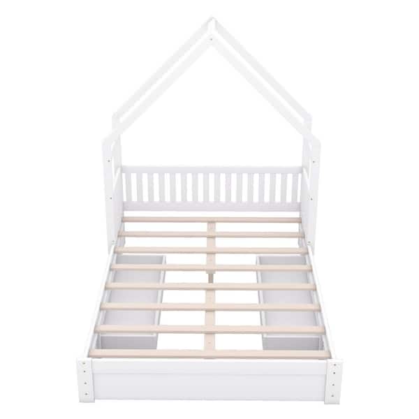 White Wood Frame Queen Size Platform Bed with Guardrail and 2-Drawers