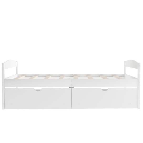 White Wood Frame Twin Size Platform Bed with 2 Drawers
