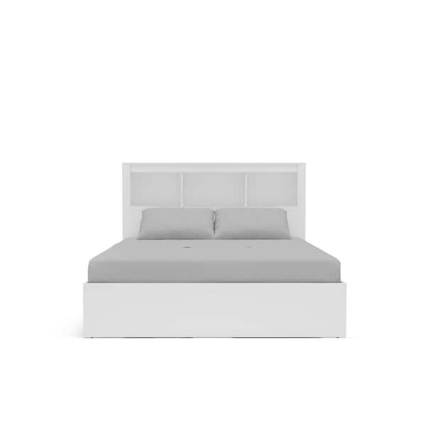 Madison White Wood Frame Full Size Platform Bed with Headboard