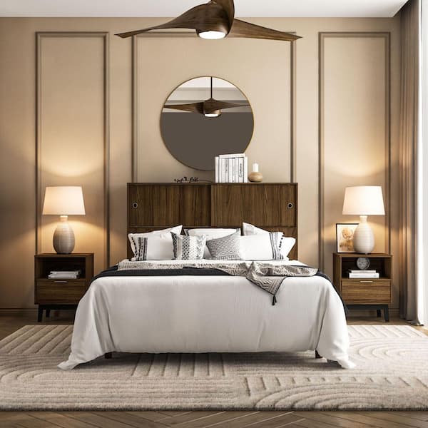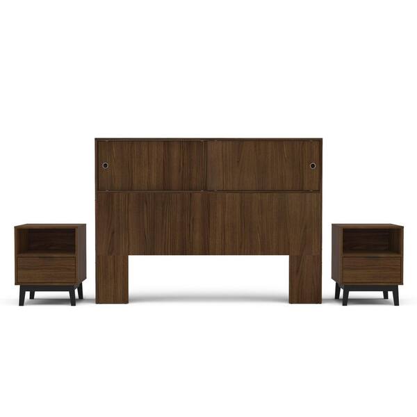 Victoria 3-Piece Walnut Wood Full Size Bedroom Set with 2 Nightstands