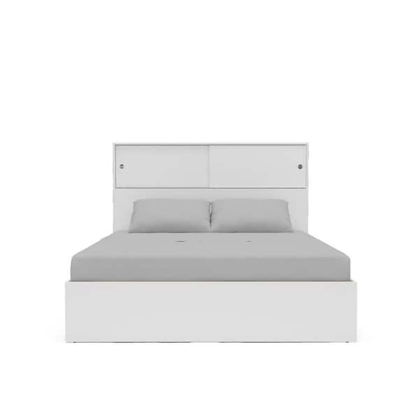 Victoria White Wood Frame Full Size Platform Bed with Headboard