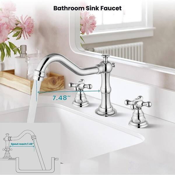 Polish Chrome Widespread Double Cross Knobs 2-Handle 3-Hole Bathroom Sink Faucet Mixing Bath Accessory Set
