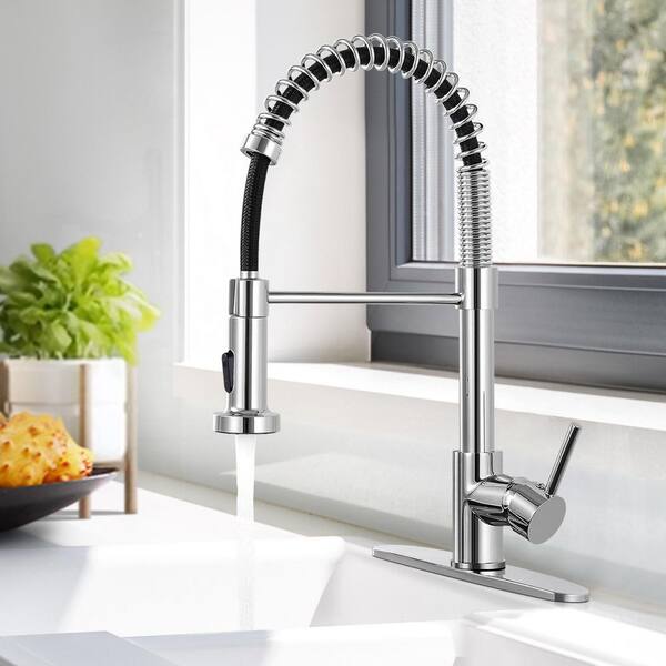 Polished Chrome 17.7 in. H Single Handle Pull Down Sprayer Kitchen Faucet with 360° Spout Swivel
