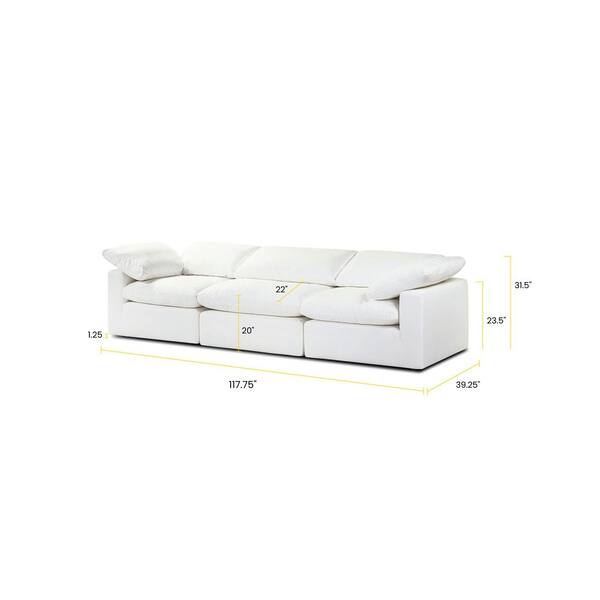 Aspen 117.75 in. Straight Arm Fabric Rectangular 3-Seat Modular Sofa in. Cotton White