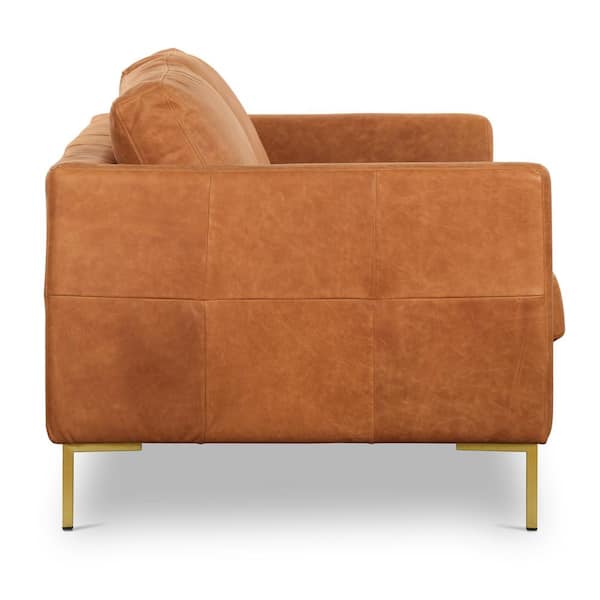 Calle 75 in. Apartment Sofa in Cognac Tan and Brass Legs with Square Arms