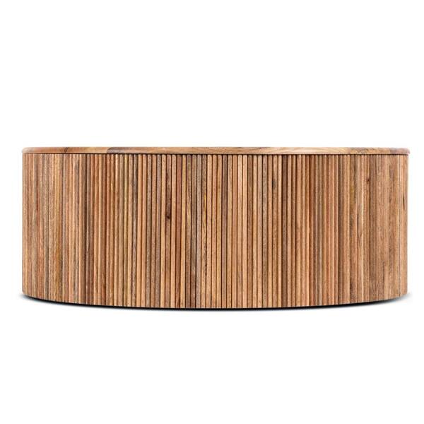 Deja 35 in. Natural Round Wood Top Coffee Table with Storage