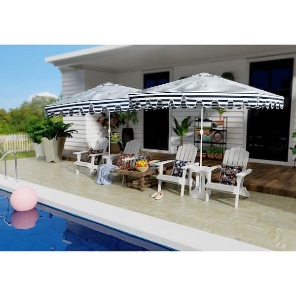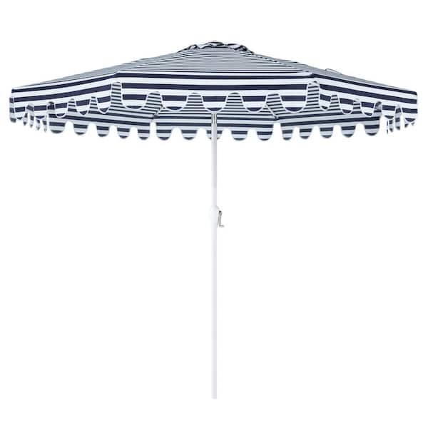 11 ft. 100% Polyester Market, UV Fade Resistant, Outdoor Umbrella in Stripe Navy White