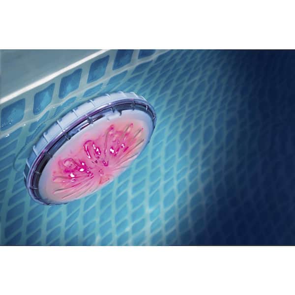 • Waterproof LED light illuminates water with four color settings