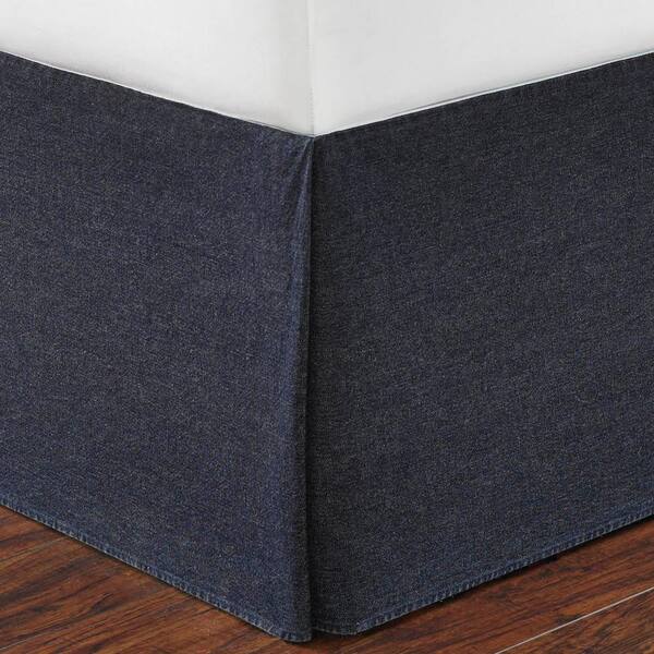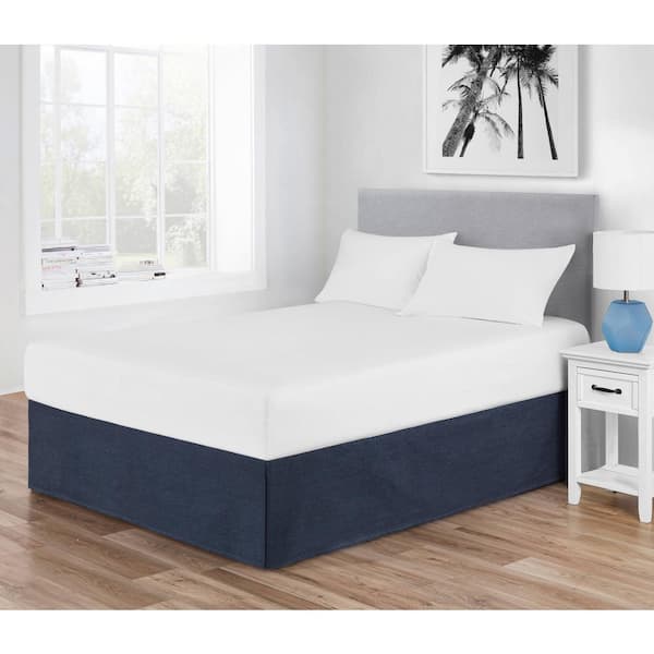 15 in. Denim Blue Solid Twin Cotton Bed Skirt