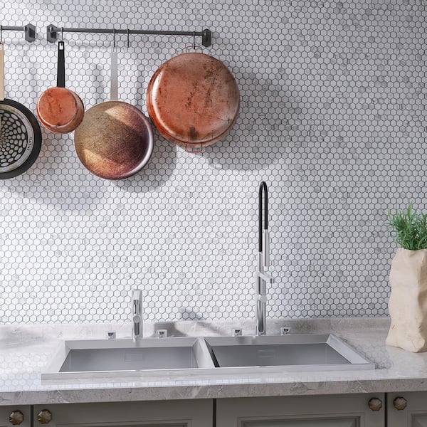 Porcetile White Cararra 10.24 in. x 11.82 in. Matte Porcelain Mosaic Tile Sample